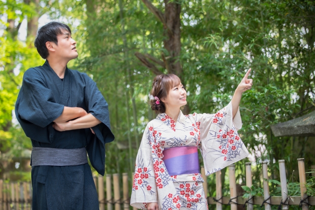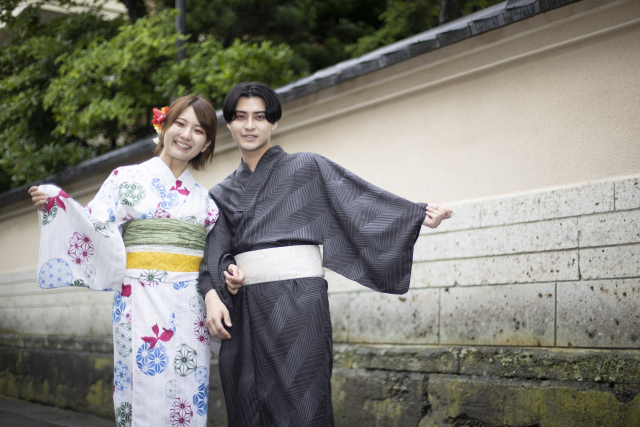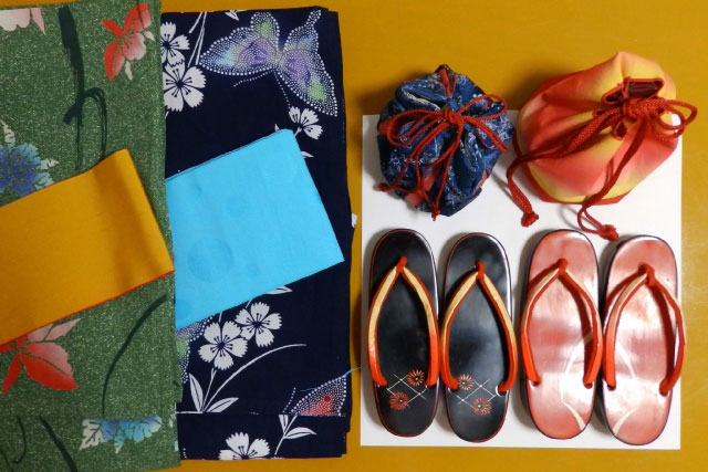 - 着物(浴衣)、帯、下駄がセットになった、手軽でお得なプランです。